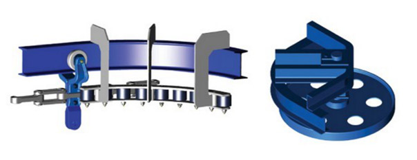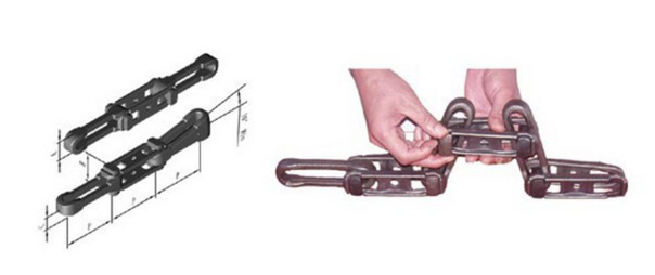 ZHXT系列分英制X348、X458、X678,公制XT80、XT100、XT160重型模鍛鏈。重型懸掛輸送機(jī)整體是由驅(qū)動裝置、張緊裝置、回轉(zhuǎn)裝置、牽引鏈條、滑架、軌道等組成。鏈條在懸掛輸送機(jī)中,鏈條是傳遞動力的構(gòu)件,牽引鏈選擇是否得當(dāng)直接影響輸送機(jī)的使用壽命及性能。鏈條由內(nèi)鏈片、外鏈片和銷軸組成,不用工具就能方便地進(jìn)行裝配、分解。各部件由特殊鋼經(jīng)精密鍛造制成,熱處理后具有高強(qiáng)度、耐熱、耐摩擦、耐腐蝕、耐沖擊等優(yōu)點(diǎn)。鏈條整體彎曲性能好,能進(jìn)行小角垂直度傾斜及大角度水平轉(zhuǎn)彎輸送,輸送時(shí)噪音小。銷軸走行時(shí)不轉(zhuǎn)動,耐磨性好,而且更換方便。